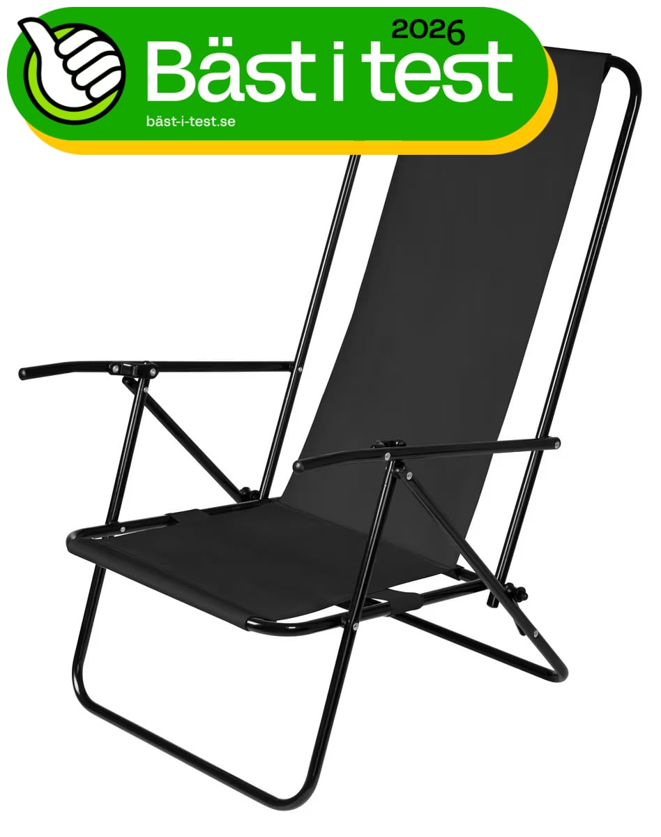 Först och främst är detta en mycket rymlig brassestol. Ryggstödet är över 70 cm högt, även den långa solbadaren kan luta sig bekvämt tillbaka. Även sittytan har generösa mått och sitsen är något högre upp än hos andra brassestolar. Maxvikten på 110 kg är bra, och Clas Ohlson är en brassestol som faktiskt rymmer kroppar av den storleken. Ryggstödet vinklas smidigt ned till viloläge, och lika enkel är brassestolen att fälla upp och ihop. Ska man anmärka på något är det lite trist att den bara finns i svart. Bäst fynd gör man om man köper brassestolen när Clas Ohlsons har den på rea, vilket händer några gånger om året. Då har man gjort sig ett riktigt kap, som håller för många strandhäng framöver.