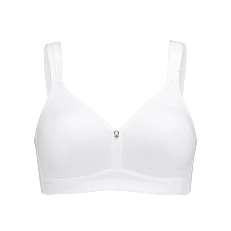 Swegmark Clean Cotton formpressad BH utan bygel är ett utmärkt exempel på att man inte ska döma hunden efter håren. Designen är inte den mest inspirerande, och att bh:n bara finns i vitt är märkligt. Men när man väl använt Clean Cotton kommer man snabbt bli omvänd av hur otroligt genomtänkt och bekväm den är. Allra mest sticker axelbanden ut. Självklart kan de justeras i längd. Men det som är så unikt bra med dem är hur den främre delen är extra bred och mjuk vadderad. Även efter en lång dag syns det knappt att man haft bh:n på sig.