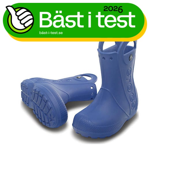 Vi har testat gummistövlar för barn och utser Crocs Handle It Rain Boot till bäst i test. Det är ultralätta stövlar som barnet kan gå och springa med precis som vanligt, vilket gör gummistövlarna smidiga för alla barn. Handle It Rain Boot klarar rejäla vattenpölar helt utan läckage, och tål dessutom slitage mycket väl. De inbygga handtaget är en smart detalj som underlättar vid påklädningen.