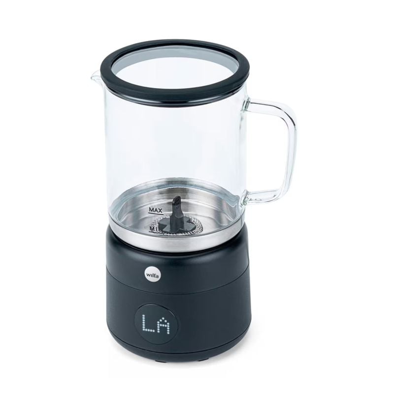 Wilfas mjölkskummare använder sig, precis som de andra maskinerna i vårt test, av ett magnetiskt rotationssystem (induktion). Detta innebär att den är superlätt att sätta ihop, man bara pluppar på den lilla vispen på det magnetiska fästet och kör igång. Det är viktigt att inte hälla i mer mjölk än vad markeringen visar, då finns det risk att den svämmar över när vispningen sätter igång och skummet får innehållet att expandera.