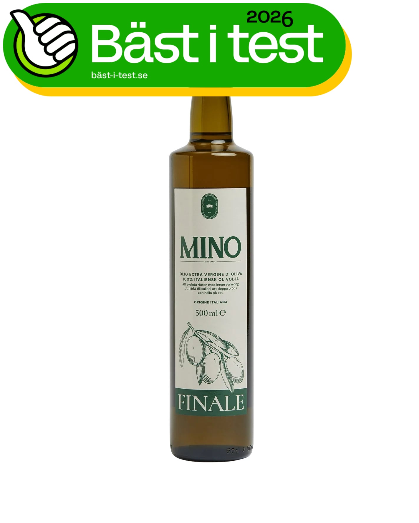 Oljan kommer i en snygg och stilren glasflaska som definitivt kan få en plats på köksbänken. Hällpipen gör att det är lätt att inte överdosera oljan utan det går lätt att ringla den över salladen. För dig som uppskattar en kompletterande olivolja med lite mer karaktär, utan att den blir för kraftfull, är Mino Finale ett riktigt bra val. Priset är definitivt i det högre spannet, men om vi jämför olivoljan med andra oljor i samma prisklass tycker vi ändå att den är “up there”.