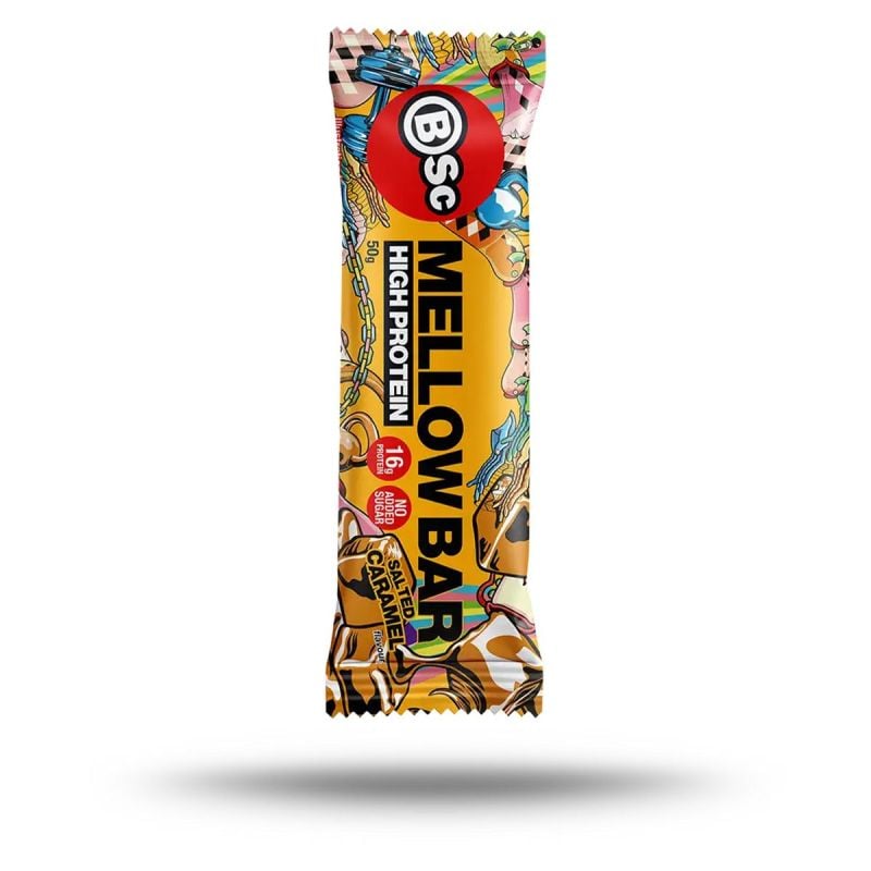 BSc Mellow Bar med smak av Salted Caramel levererar en mjuk, fluffig konsistens, nästan mer lik en marshmallow än en traditionell proteinbar – och det märks att man försökt ge en lättare känsla. Den smakar gott, med en tydlig kolaton och sältans kontrast, vilket är ovanligt lyckat i en “hälsosam” bar. Med 34 % protein ligger Mellow Bar i nivå med Barebells och Star Nutrition Protein Bar, vilket placerar den i toppskiktet bland testets proteinbars.