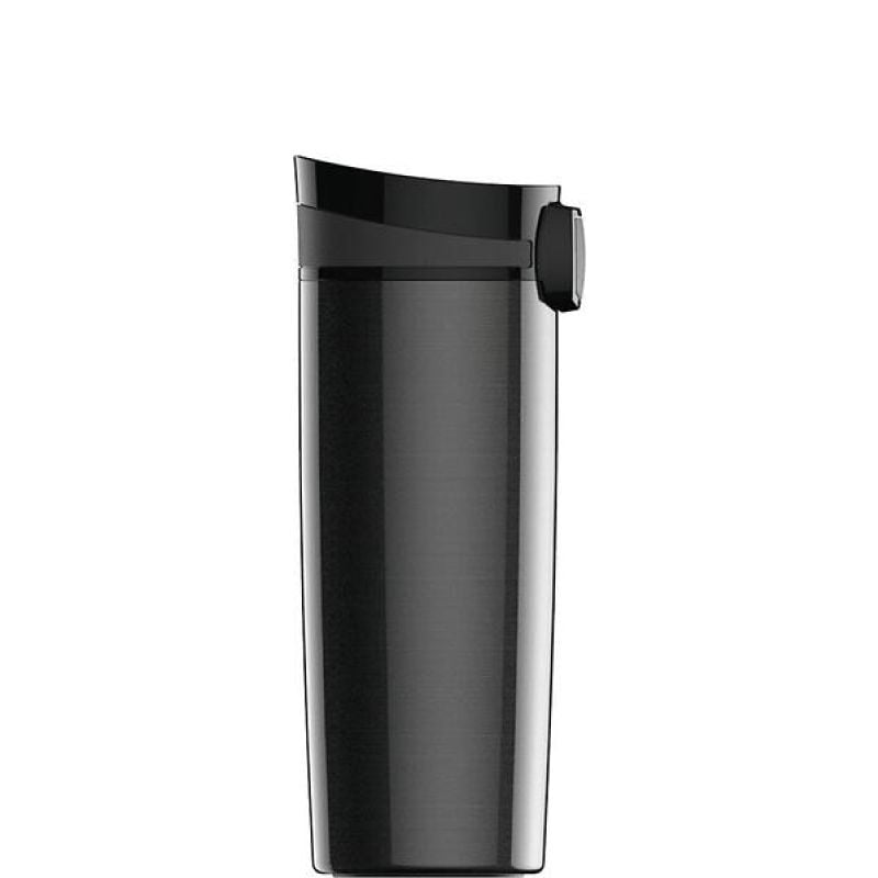 Sagaform erbjuder sin bilmugg i två olika modeller, varav den mindre är nätt nog att få plats i en kaffemaskin på exempelvis en bilmack. Det är förstås inget som hindrar användaren att fylla upp muggen hemma, om så önskas. Det här är en termosmugg i rostfritt stål, där locket i plast har en liten öppning som öppnas och stängs med ett knapptryck. Eftersom det ibland är lite knepigt att avgöra om öppningen är öppen eller stängd har funktionen, vars tanke är god, orsakat en del onödigt spill under testperioden. Synd, eftersom locket fungerar i övrigt bra: det är en lagom stor öppning att dricka ur och det blir sällan läckage, om muggen inte skakas kraftigt eller hålls upp och ned.