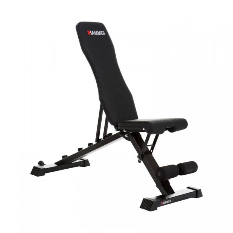 Hammer träningsbänk Force 2.0 är en enkel men välbyggd bänk som fungerar utmärkt i hemmagymmet. Bänken går att fälla ihop och är därmed extremt lätt att förvara. Lutningslägena gör den flexibel för allt från platt bänkpress till lutande press och axelövningar. Gummifötterna gör att den står stabilt även på lite ojämna golv.