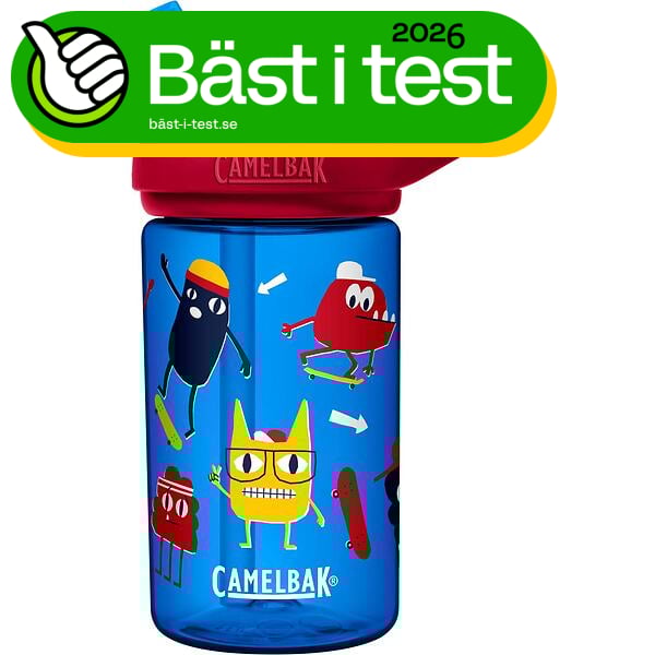 Camelbak Eddy+ Kids är en rakt igenom okomplicerad vattenflaska. Den utgörs av fyra delar: själva flaskan, plastlocket, sugrör samt en avtagbar pip i silikon. Pipen kan enkelt öppnas och stängas, och Eddy+ Kids är så smidigt konstruerad att den kan användas av både små och stora barn. Flaskan finns i en massa roliga färger och mönster, något som gör att alla barn kan hitta en flaska de vill använda.